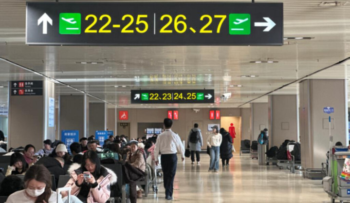 2月4日15时,哈尔滨太平国际机场,乘客们在等候登机。李爽 摄