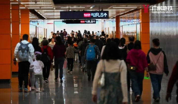 广州地铁站场景。“广州地铁”图